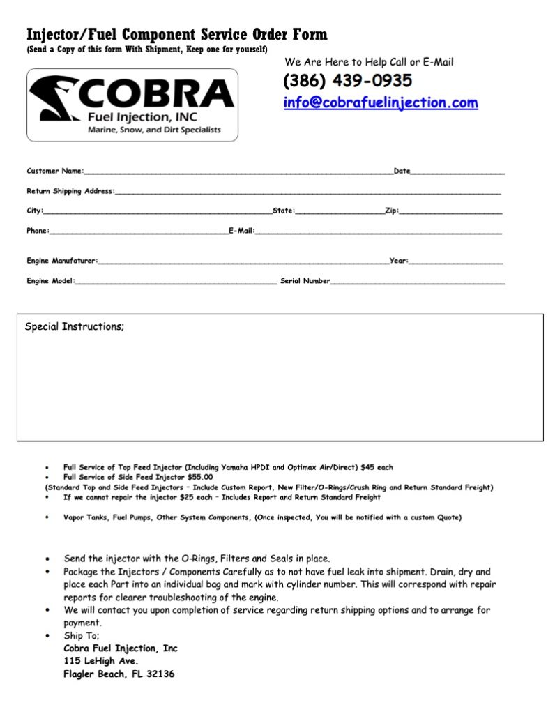 Cobra Fuel Injection will not be responsible for any shipments above the insured value the customer has placed on the box and its contents.